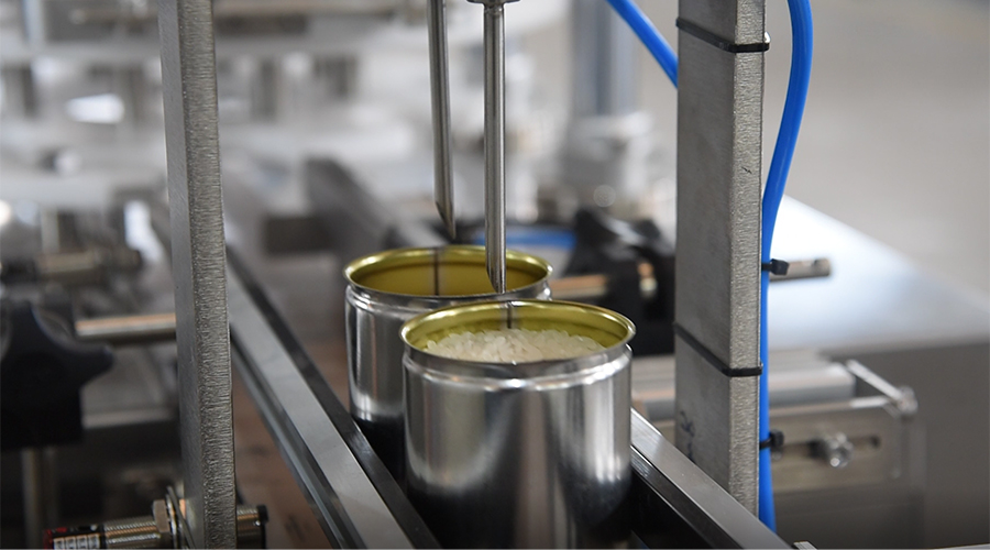 首先,我们的生产线从理瓶机开始,确保了空罐的整齐排列,为后续工序打下基础。紧接着,直线式紫外线杀菌设备对空罐进行彻底杀菌,确保卫生安全。Z提升机和工作平台的结合,将大米平稳地输送至10头组合称,实现精准称重。接料机自动完成大米灌装,制氮机供应氮气,充氮气装置将氮气充入罐中,有效隔绝氧气,保障大米的新鲜度。全自动封罐机精准封口,锁住新鲜与营养,而激光打码机则打印生产日期,实现产品追溯。