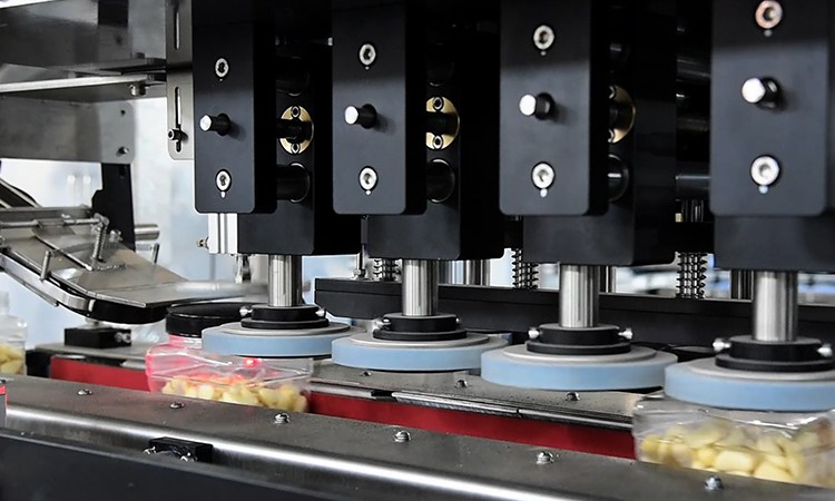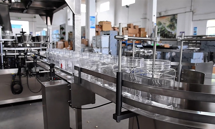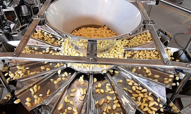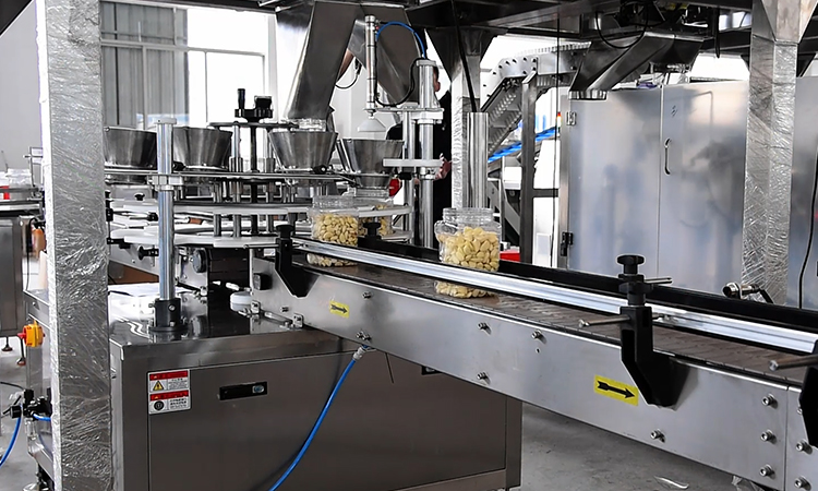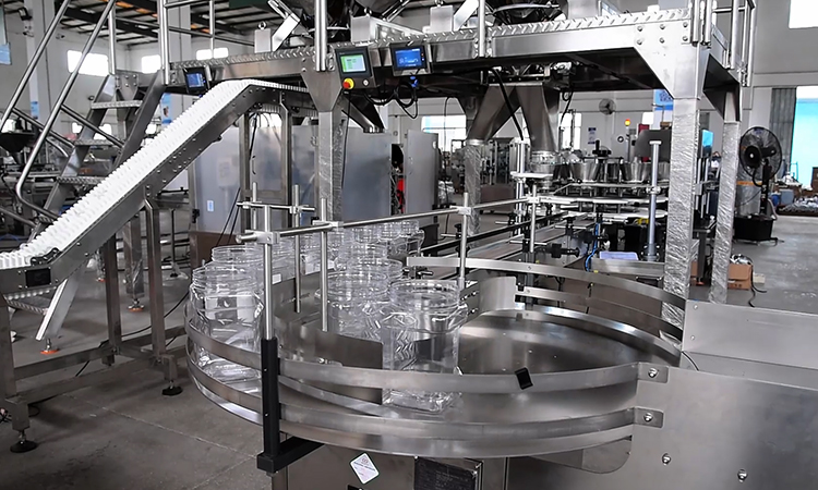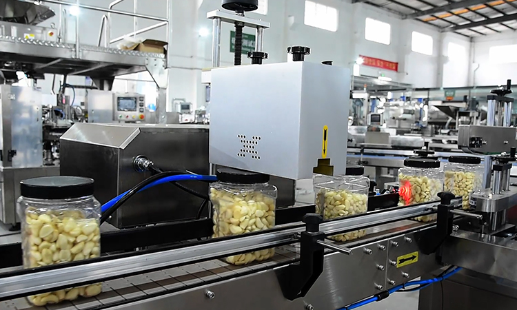 生产线的起点是理瓶机,它负责将空瓶整齐地排列并输送到工作平台。这一环节为后续的灌装和包装工作奠定了基础,确保了整个生产流程的顺畅性。紧接着,大蒜原料通过输送带进入14头组合称。这款设备以其高效精准的称重能力成为生产线的核心。其14个称重斗的容积为1.6L,能够快速准确地完成大蒜的称重任务。特殊设计的110度机箱和电动镀硅胶集料斗,有效避免了大蒜在称重过程中的破碎和损伤。此外,组合秤的物料接触部分全部采用镀硅胶材质,并配备304不锈钢夹具,既保证了食品卫生安全,又延长了设备的使用寿命。