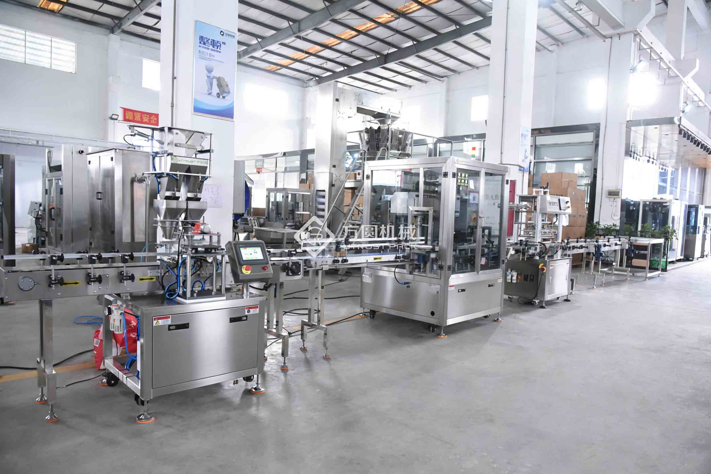 称重完成后,坚果顺势落入双工位直线接料机,配合振动辅助设计,让坚果均匀分布、饱满填充进罐中,避免出现空罐、少料的情况。更厉害的是,这条灌装线的效率拉满,每分钟能完成30-40罐的灌装工作,在保证品质的同时,轻松应对大批量生产需求。